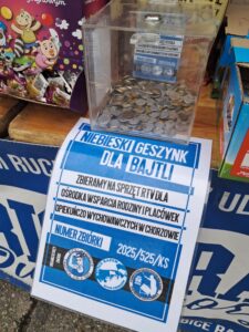 Przez cały cykl zajęć lipcowych można bylo także zakupić nasz gadżet reklamowy czy wesprzeć naszą zbiórkę publiczną na zakup sprzętu RTV dla dzieci z Ośrodka Wsparcia I Rodziny w Chorzowie .