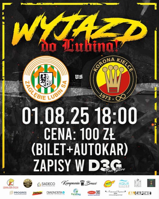 Atrakcyjne warunki wyjazdowej wyprawy kieleckich fanów do Lubina. Kibice przygotowują się na kolejną ważną wyprawę za swoją drużyną, która tym razem wyruszy do Lubina pierwszego sierpnia. Wyjazd ten jest współfinansowany przez Stowarzyszenie Kibiców Zjednoczona Korona, dzięki czemu koszt za bilet i przejazd autokarem wynosi jedynie sto złotych. Fani podróżujący prywatnymi autami są proszeni o poruszanie się w jednej zorganizowanej kolumnie wraz z całą grupą. Osoby jadące własnym transportem muszą zapisać się w punkcie sprzedaży, a koszt ich wejściówek na mecz zostanie pokryty przez Stowarzyszenie. Organizatorzy zaznaczają, że nie będzie możliwości dopisania się do listy wyjazdowej na miejscu pod stadionem rywala. Zapisy są prowadzone od dzisiaj w punkcie D3G-Fan Store – Sklep Kibica Korony Kielce oraz będą dostępne w namiocie Stowarzyszenia podczas meczu z Legią. Wspólna podróż i liczna obecność w sektorze gości ma na celu pokazanie siły kieleckiej społeczności fanatyków. Każdy wyjazd to nowa lekcja charakteru i okazja do godnego reprezentowania kieleckich barw w Polsce. Sympatycy zachęcają do szybkiego zapisu, aby nie przegapić okazji do wspólnej wyprawy w doskonałej cenie. Mobilizacja trwa w każdym fan klubie, aby kielecki sektor w Lubinie wypełnił się żółto-czerwonymi barwami.