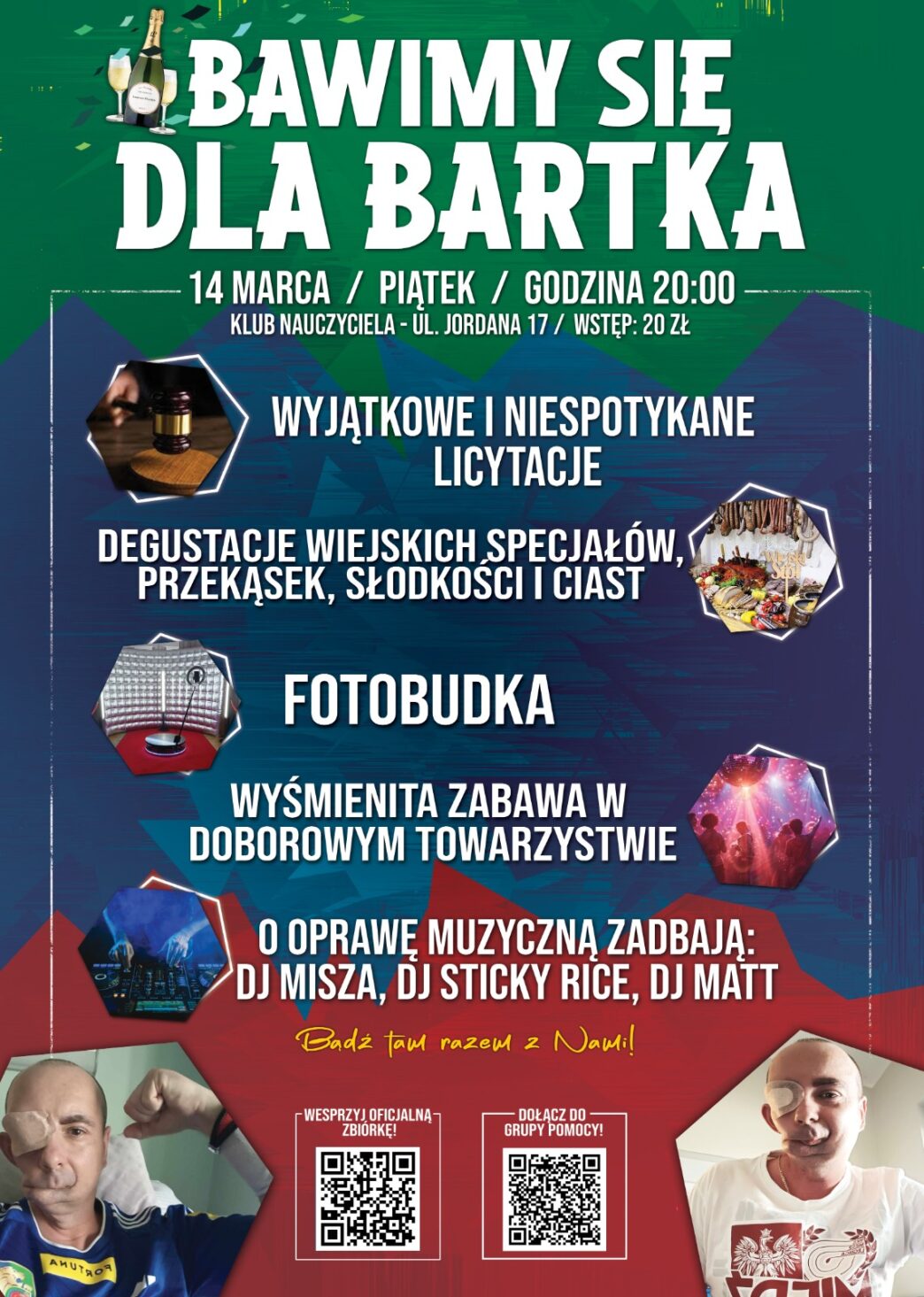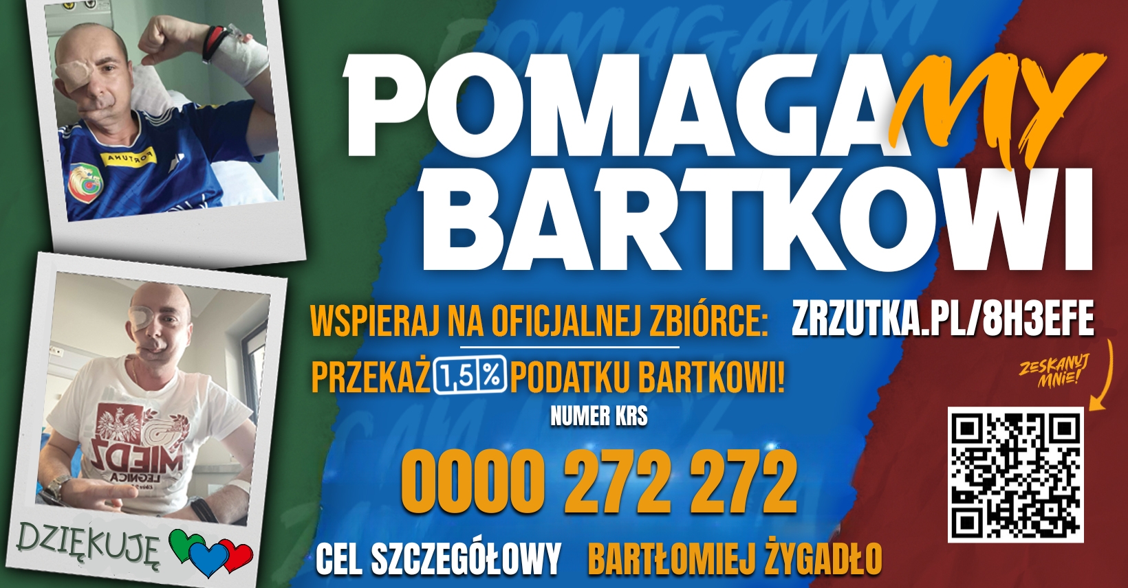 Tuż po piątkowym meczu Miedzi zapraszamy wszystkich na imprezę charytatywną, która to odbędzie się dla jednego z kibiców Miedzianki, koordynatora naszego ośrodka Kibice Razem w Klubie Nauczyciela. Pomaganie jest fajne. Bądźcie tam RAZEM z nami. Pomóż z nami uratować Bartka zdrowie i życie. Pomóż Bartkowi wygrać tą nierówną walkę !