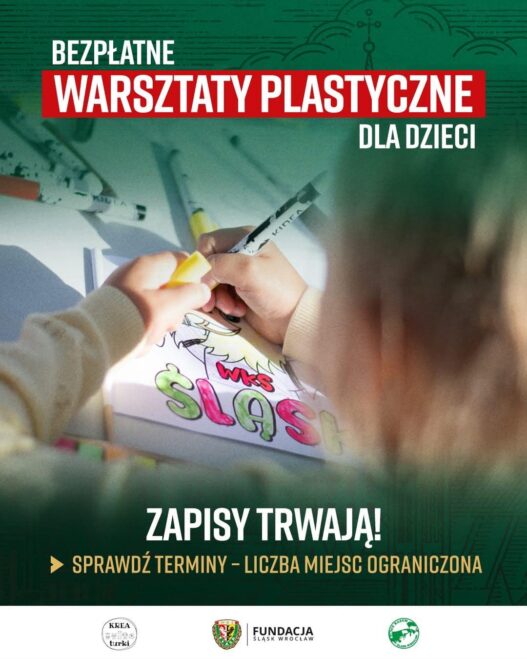 Masz od 7 do 12 lat i chcesz się spotkać w grupie w ramach ciekawego działania? Zapraszamy na bezpłatne warsztaty kreatywne!Oto co będziemy robić: breloczki wykonywane metodą pixel z elementami klubowymi. Taki brelok to także idealny upominek świąteczny dla każdego kibica Śląska Wrocław. Będziecie zachwyceni efektem końcowym! Każdy z Was wyjdzie z pracowni ze swoim własnym dziełem. Zapewniamy fachową kadrę, pracę w małych grupach, wszystkie materiały, drobny poczęstunek i niespodzianki od…