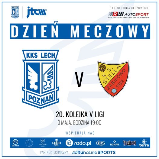 ⚽ Dzień meczowy ⚽🏆20. kolejka V ligi [mecz zaległy] 📆 03.05.2021🕖 19:00🆚 Stella Luboń 🏟 Stadion przy ulicy Gdańskiej w Poznaniu 📲 #DWLSTE 🎯 Tylko zwycięstwo!🚫 Mecz bez udziału publiczności🤝 RWAutoSport – Wypożyczalnia samochodów sportowych