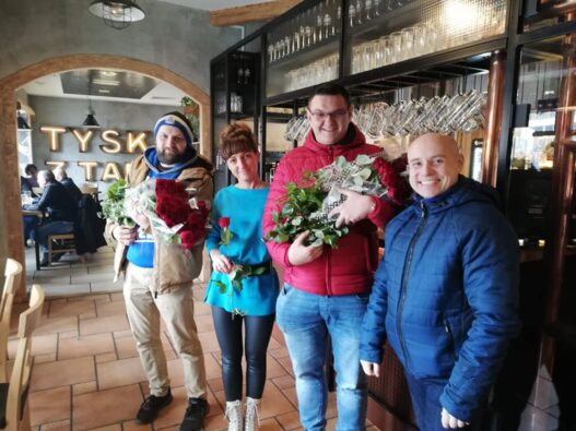 Natomiast my postanowiliśmy jak to ma miejsce u nas już co roku obdarować wszystkie kobiety symboliczną różą…