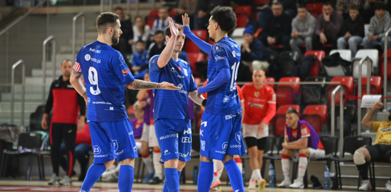 Mecz rozpoczął się zaskakująco. Już w 27. sekundzie gospodarze wyszli na prowadzenie po trafieniu Dawida Radomskiego. W kolejnych minutach wydarzenia na parkiecie całkowicie zdominowali podopieczni trenera Orlando Duarte. Do końca pierwszej odsłony, mimo wielu dogodnych okazji, tylko raz zdołali pokonać znakomicie dysponowanego bramkarza zespołu z Gniezna. W 6. minucie, po dograniu Martina Solziego, do siatki trafił niezawodny Uriel Cepeda.