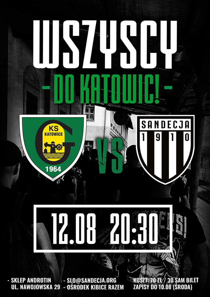 Na kolejny zorganizowany wyjazd wybieramy się 12 sierpnia do Katowic na mecz z GKS. Wszystkich chętnych zapraszamy.  Więcej informacji na plakacie.