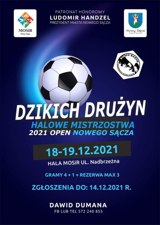 Tradycyjnie końcem roku mamy przyjemność współorganizować Halowe Mistrzostwa Nowego Sącza „Dzikich drużyn” 2021 Open. Wszystkich chętnych zapraszamy do udziału, więcej informacji na plakacie.