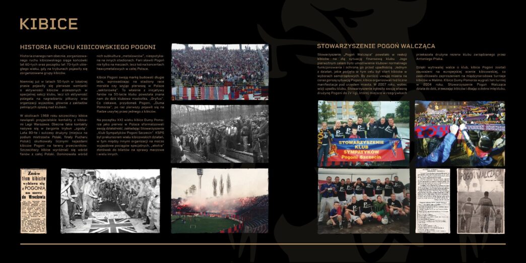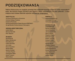 Wśród odsłoniętych tablic znalazły się również te poświęcone ruchowi kibicowskiemu oraz akcjom organizowanym przez kibiców, które powstały przy ogromnym udziale Stowarzyszenia Kibiców Pogoni Szczecin „Portowcy”.