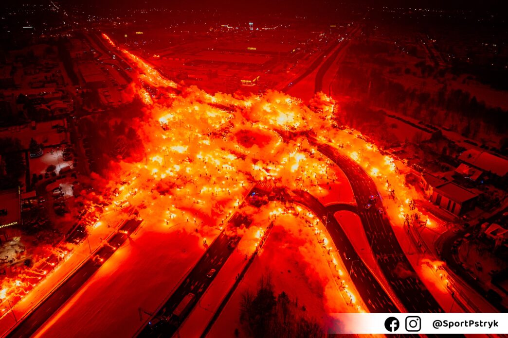 Kibice ustawili się wzdłuż ulic i dookoła ronda, na trąbce odegrano hymn Jagiellonii, a po wszystkim odpalone wiele czerwonych rac co dało znakomity efekt.