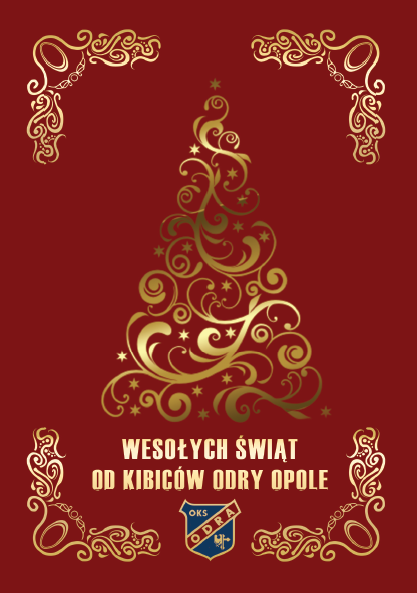 Świąteczne kartki przygotowane dla fanów Odry przez nasz ośrodek i Stowarzyszenie „Jedna Odra” zostały wydane w nakładzie kilkuset sztuk. Blisko połowa z nich zostanie wysłana do osób związanych z Odrą i dobrodziejów jej kibiców, pozostałe może otrzymać nieodpłatnie każdy fan Niebiesko-Cerwonych.