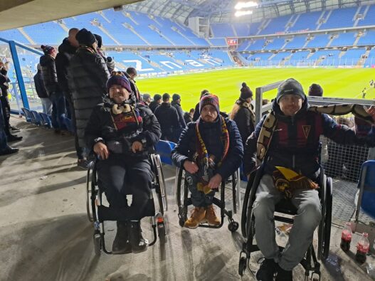 7 kibiców niepełnosprawnych obecnych na urodzinowym wyjeżdzie w Poznaniu.