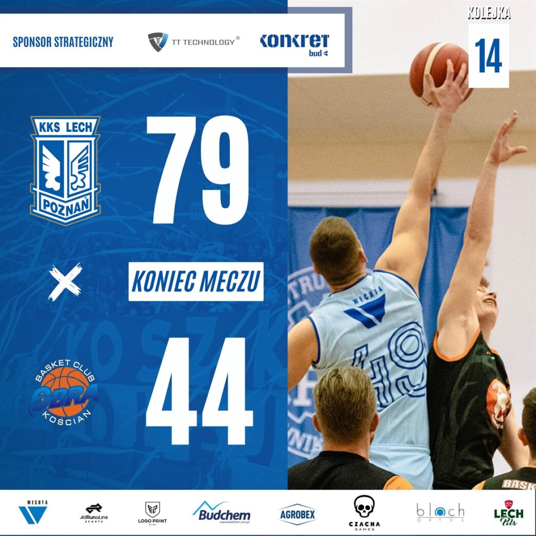 Pewną wygraną zakończył się sobotni pojedynek 14. kolejki koszykarskiej Wiary Lecha z rezerwami Obry Kościan. Niebiesko-biali pokonali rywali 79:44. Najwięcej punktów dla Kolejorza rzucił Filip Radzik – 24.