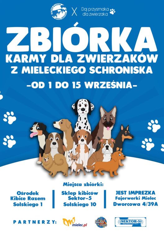 Od 1 do 15 września ośrodek Kibice Razem Stal Mielec organizuje zbiórkę karmy dla zwierzaków z mieleckiego schroniska.