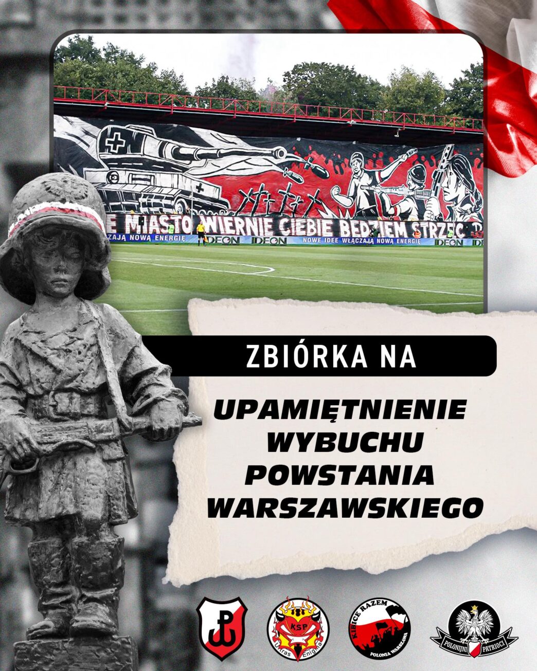 My, kibice Czarnych Koszul mamy wyjątkowy obowiązek i powinność pamiętać o naszych bohaterach. Zarówno nasz klub jak i ludzie historycznie z nim związani, są nierozerwalnym elementem naszej warszawskiej tożsamości i patriotycznych korzeni naszego klubu. Powstanie Warszawskie jest częścią naszego DNA. Udział w nim brali nie tylko piłkarze, ale i działacze oraz zawodniczki i zawodnicy innych sekcji. To przez naszą murawę 22 sierpnia nastąpił atak na niemieckie pozycje na Dworcu Gdańskim.