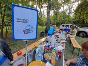 Podczas ogniska przeprowadzono warsztaty malarskie i artystyczne dla wszystkich uczestników ogniska były tradycyjne kiełbaski , kociołek, kartofelki z ogniska, słodkie i słone przekąski i napoje.