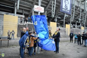 Władze klubu, miasta Gdyni, radni, rodzina, przyjaciele i kibice ze stowarzyszenia Socios Arka Gdynia w symbolicznej uroczystości odsłonili tablicę upamiętniającą Janusza Kupcewicza, słynnego pomocnika żółto-niebieskich.
