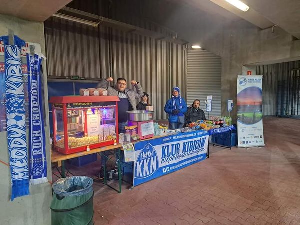 Na tym meczu jesteśmy rozstawieni w dwóch miejscach i nasze stanowiska znajdowały się na stadionie pod sektorem O i S z watą i popcornem wraz z Klub Kibiców Niepełnosprawnych Ruchu Chorzów .