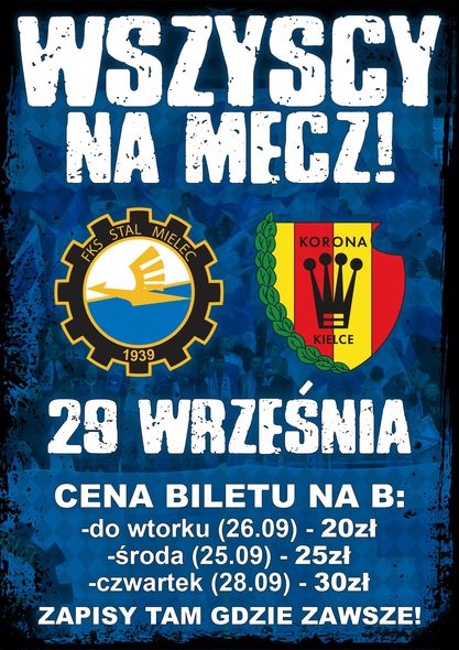 STAL MIELEC – Korona Kielce. Wszyscy do młyna!!!