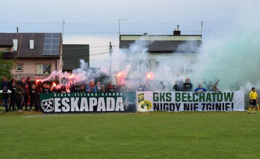 Na kolejnym wyjazdowym spotkaniu naszych rezerw, pojawiamy się w około 80 osób. Mamy ze sobą flagę ESKAPADA oraz dobrze już znany transparent GKS BEŁCHATÓW NIGDY NIE ZGINIE! W drugiej połowie odpalamy kilka rac, zielone i czarne świece dymne oraz trochę petard hukowych. Na boisku zwycięstwo naszej młodej drużyny 2-1.