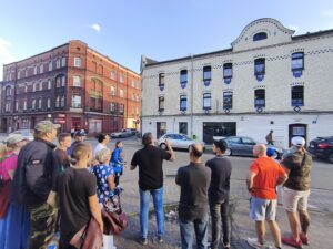 ✅Punktem startu był Miejski Dom Kultury Batory️ gdzie wszystko się rozpoczęło , a następnie kolejne punkty takie jak szkoła Podstawowa nr 34, pobliskie ogródki działkowe, gdzie znajdowały się szatnie i boisko na Kalinie, gdzie Ruch zdobywał dwa pierwsze tytuły mistrza Polski , oraz skwer przy zbiegu ulic Farny i Wrocławskiej, gdzie mieściło się pierwsze historyczne boisko. Zobaczyliśmy także gdzie urodził się słynny Gerard Wodarz✌️.