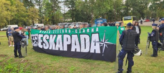 Na miejscu meldujemy się kilka minut po rozpoczęciu meczu, a tam ku naszemu ogromnemu zdziwieniu wita nas duży zastęp mundurowych, armatka wodna (!) i zamknięta brama oraz organizatorzy, którzy oznajmiają nam, że nie wejdziemy, gdyż nie wysłaliśmy listy imiennej, a nasz klub nie podpisał jakiegoś papierka.