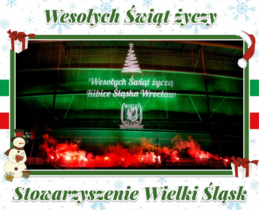 Z okazji Świąt Bożego Narodzenia życzymy wszystkim Kibicom Śląska Wrocław dużo zdrowia, radości, miłości i spełniania marzeń. By w tym trudnym momencie nie zabrakło w Waszych domach rodzinnej atmosfery, a każdą chwilę byście poświęcili swoim bliskim.