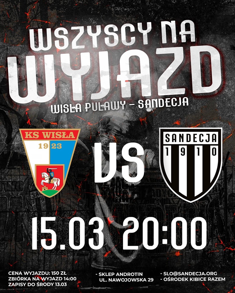 Ruszamy z zapisami na pierwszy wyjazd w tym roku do Puław piątek 15 marca godzina 20:00. Więcej informacji na plakacie.