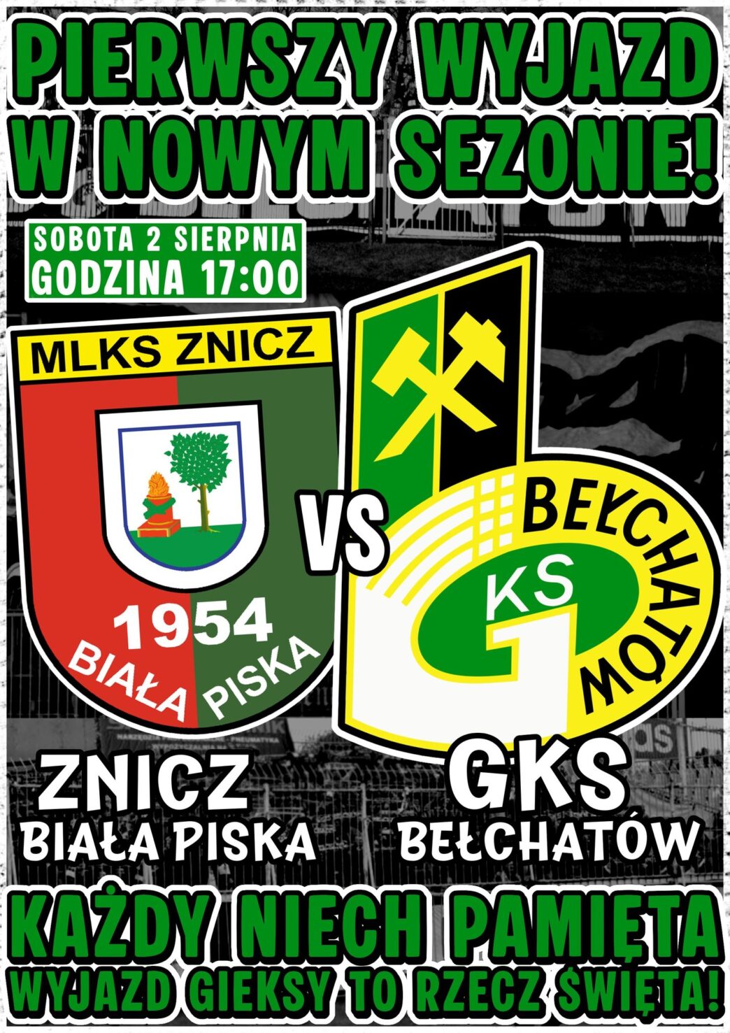 W sobotę 2 sierpnia jedziemy na mecz Znicz Biała Piska vs GKS BEŁCHATÓW. Początek tego spotkania ustalono na godzinę 17:00.