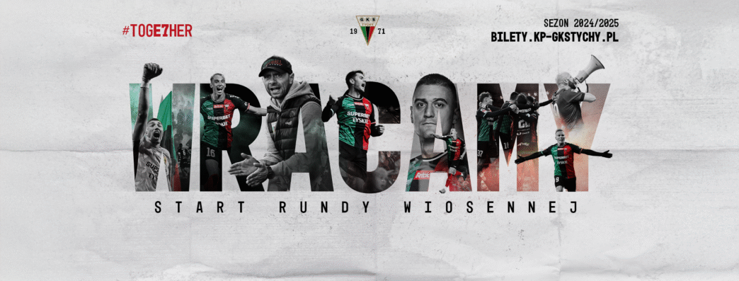 Składa się tylko z siedmiu liter, które wspólnie tworzą jedno kluczowe słowo. Kryje się za nim wiele znaczeń, a my już teraz odkryjemy pierwsze z nich! WRACAMY – to hasło kampanii marketingowej GKS-u Tychy na rundę wiosenną rozgrywek Betclic 1 Ligii.
