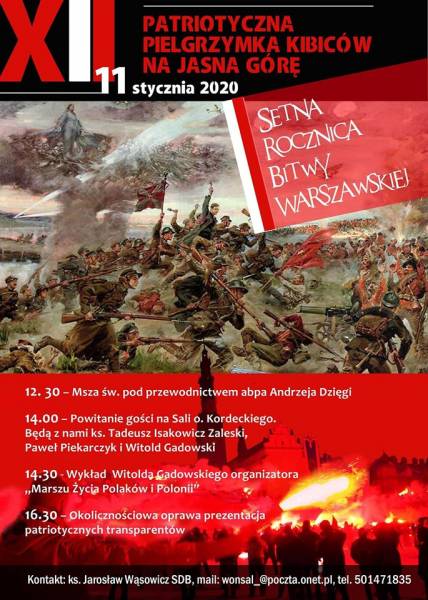 Już 11 stycznia rusza XII Patriotyczna Pielgrzymka Kibiców na Jasną Górę, której ideą przewodnią na ten rok będą obchody 100. rocznicy Bitwy Warszawskiej. Kibice Lechii zawsze licznie stawiają się w Częstochowie z biało-zielonymi intencjami i nie inaczej będzie tej zimy.