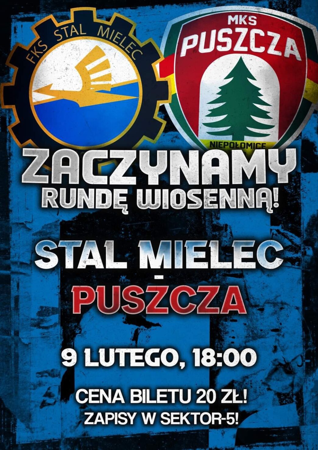 STAL MIELEC – Puszcza NiepołomiceZapisy na młyn:Ośrodek Kibice Razem Stal Mielecul. Solskiego 1Sklep Kibiców Stali Sektor-5ul. Solskiego 10