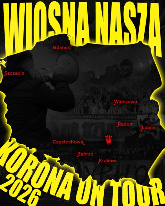Kibice Korony informują, że choć za oknem wciąż utrzymuje się śnieg, to za trzy tygodnie rozpoczną pierwszy tegoroczny wyjazd, inaugurujący rundę wiosenną. Przypominają, że przed nimi seria wyjazdów, na których nie może zabraknąć zaangażowanych fanów. Zapisy na pierwszy wyjazd do Warszawy trwają w D3G-Fan Store, a do 19 stycznia obowiązuje niższa cena 110 zł, co ma dodatkowo zachęcić do wcześniejszej decyzji. Podkreśla się, że uczestnicy tego wyjazdu otrzymają pierwszeństwo przy zapisach na niewielką pulę biletów w otwartej sprzedaży na wyjazd do Radomia, co buduje dodatkową motywację. W przestrzeniach kibicowskich zachęca się do udostępniania tej informacji dalej oraz wysyłania jej do znajomych, wskazując, że liczba miejsc jest ograniczona. Podbija się narrację o konieczności przebudzenia ze „zimowego snu” i wejścia w rundę z pełnym zaangażowaniem. Kibice wyrażają przekonanie, że nadchodząca wiosna będzie należała do Korony na wyjazdach i w dopingowym wymiarze.
