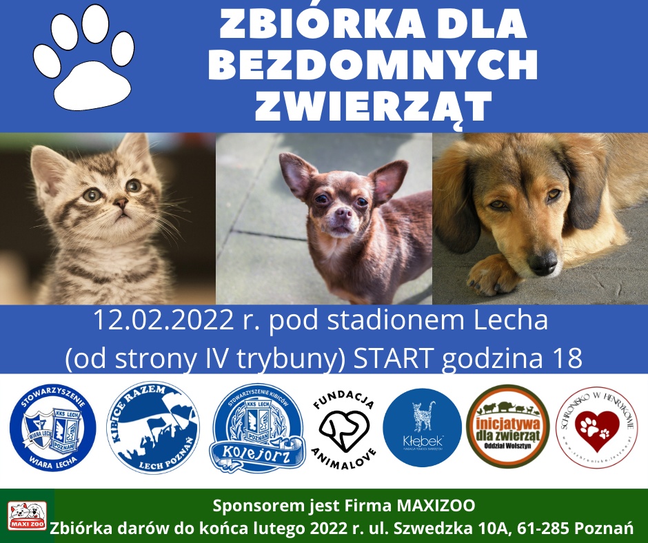 Dlatego we wspólnej akcji Stowarzyszenia Kibiców Kolejorz, Wiary Lecha, poznańskiego ośrodka Kibice Razem i MAXI ZOO wspieramy bezdomne zwierzęta!