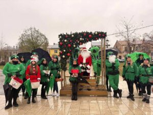 Podzieleni na trzy ekipy, pełni energii i dobrego humoru, pojawiliśmy się pod przedszkolami i szkołami, by przywitać maluchy cukierkami , możliwością zrobienia zdjęcia i oczywiście legendarną piąteczką od Mikołaja ✋.