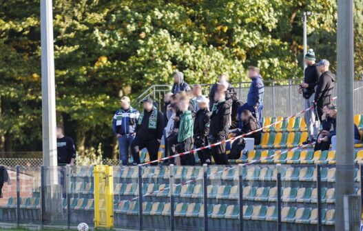 To kolejny mecz, gdzie pojawiliśmy się w sektorze gości. Tym razem na daleki wyjazd do Wikielca koło Iławy dotarliśmy w 21 osób. Niestety nie dojechała 7-osobowa grupa z flagą, obecna na kadrze na Wyspach Owczych, która miała dotrzeć prosto z lotniska z Gdańska, lecz z powodu dużego opóźnienia samolotu nie miała już szans zdążyć do Wikielca.Na meczu sporadycznie dopingujemy, miejscowy