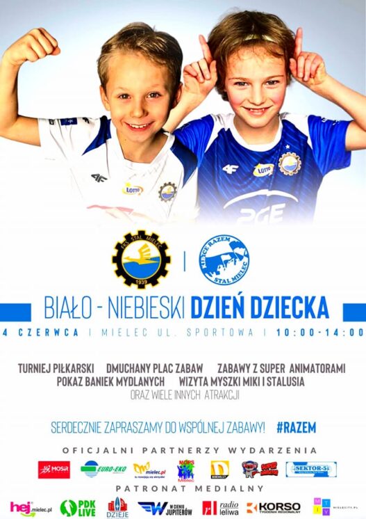 Jak co roku Ośrodek Kibice Razem Stal Mielec w porozumieniu z klubem FKS Stal Mielec S.A., przynależną do niego Akademią Piłkarską PGE FKS Stal Mielec oraz Miejskim Ośrodkiem Pomocy Społecznej w Mielcu organizują Biało-Niebieski Dzień Dziecka.