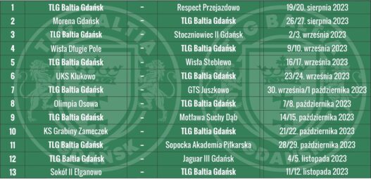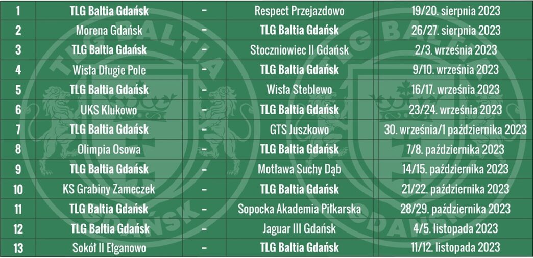 Inauguracyjny mecz naszej drużyny w B klasie odbędzie się tydzień później, prawdopodobnie 20 sierpnia, a rywalem będzie Respect Przejazdowo. Oczywiście będziemy Was informować i podgrzewać atmosferę tym bardziej im bliżej meczu, a na razie łapcie ramowy terminarz na rundę jesienną i nigdy nie zapominajcie, że liczy się Tylko Lechia Gdańsk