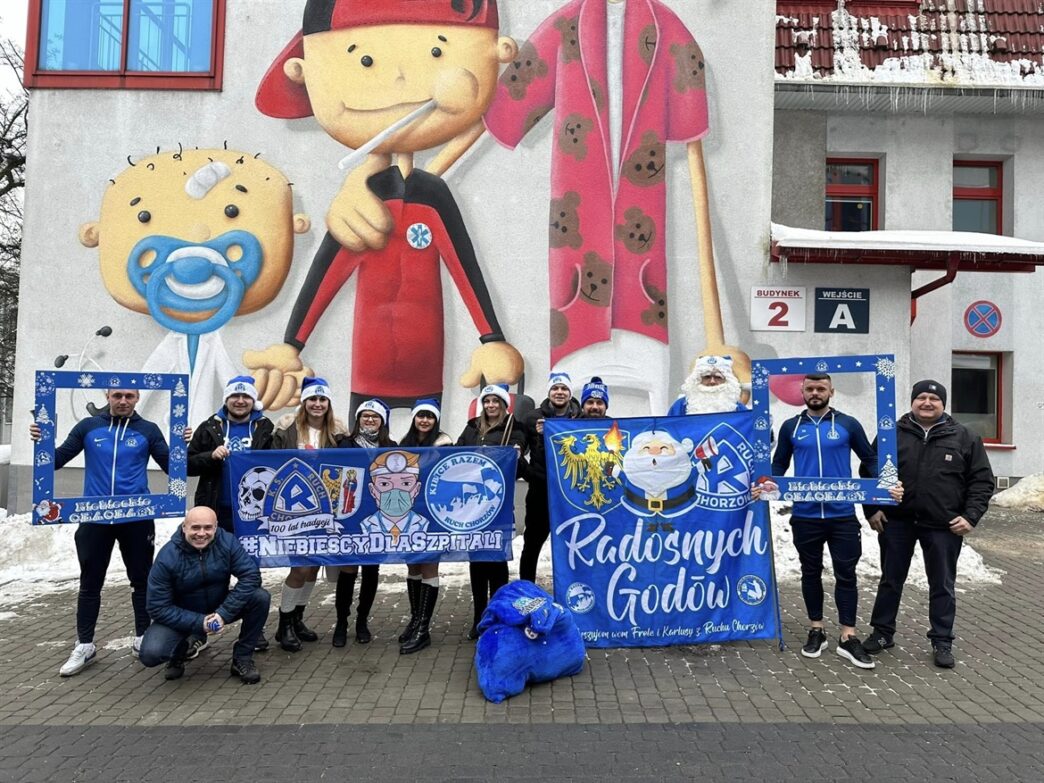 🆕Nasz Orszak z Niebieskim Mikołajem po wizycie w Klubie udał się Zespół Szpitali Miejskich w Chorzowie przy ulicy Truchana na wizyte z pełnymi workami prezentów 🎁, tak by obdarować wszystkie dzieci przebywające na oddziałach w szpitalu. 🥳🥰🎅Z nami Przyjechali także piłkarze Ruch Chorzów – Daniel Szczepan i Miłosz Kozak. ⚽️ Dla wszystkich dzieci rozdaliśmy prawie 1️⃣5️⃣0️⃣ prezentów🎁 z niebieską eRką 🤩.Święty Mikołaj 🎅 jeszcze butów i worka z prezentami nie zawiesił 👌i wkrótce…