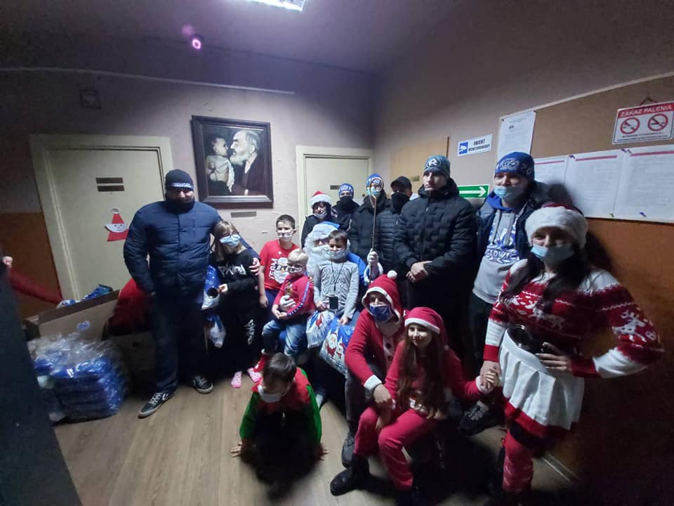 Za zebrane fundusze kibice z Mysłowic przygotowali czapek i paczek ze słodyczami dla najmłodszych dzieci z Miasta