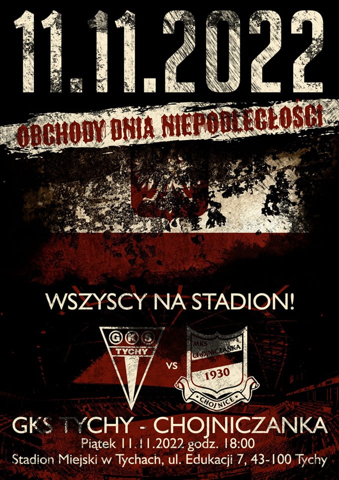 11 Listopada o godz. 18:00 podejmujemy Chojniczanke Chojnice. Tego dnia zachęcamy do meldowania się w młynie również z barwami narodowymi.
