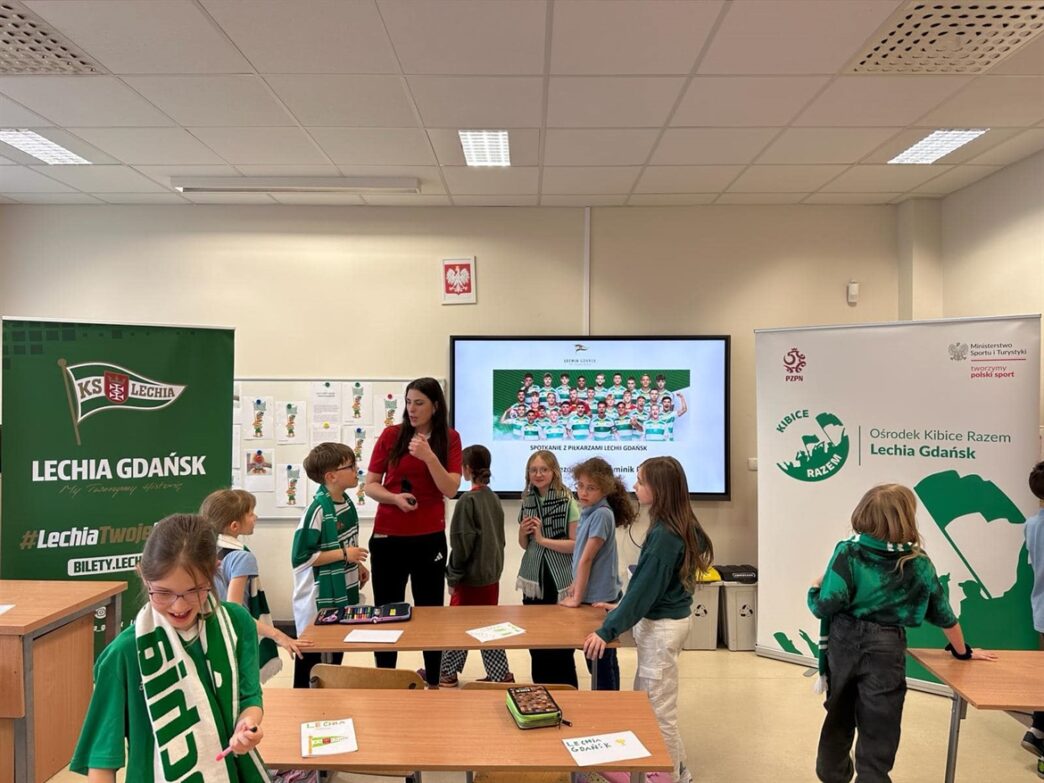 Dominik Piła i Kacper Sezonienko zrobili niespodziankę uczniom Pozytywnej Szkoły Podstawowej przy ul. Azaliowej! 😍Lechia Gdańsk przekazała vouchery na mecz 👍🇳🇬Kolejna wspólna akcja z klubem 👌