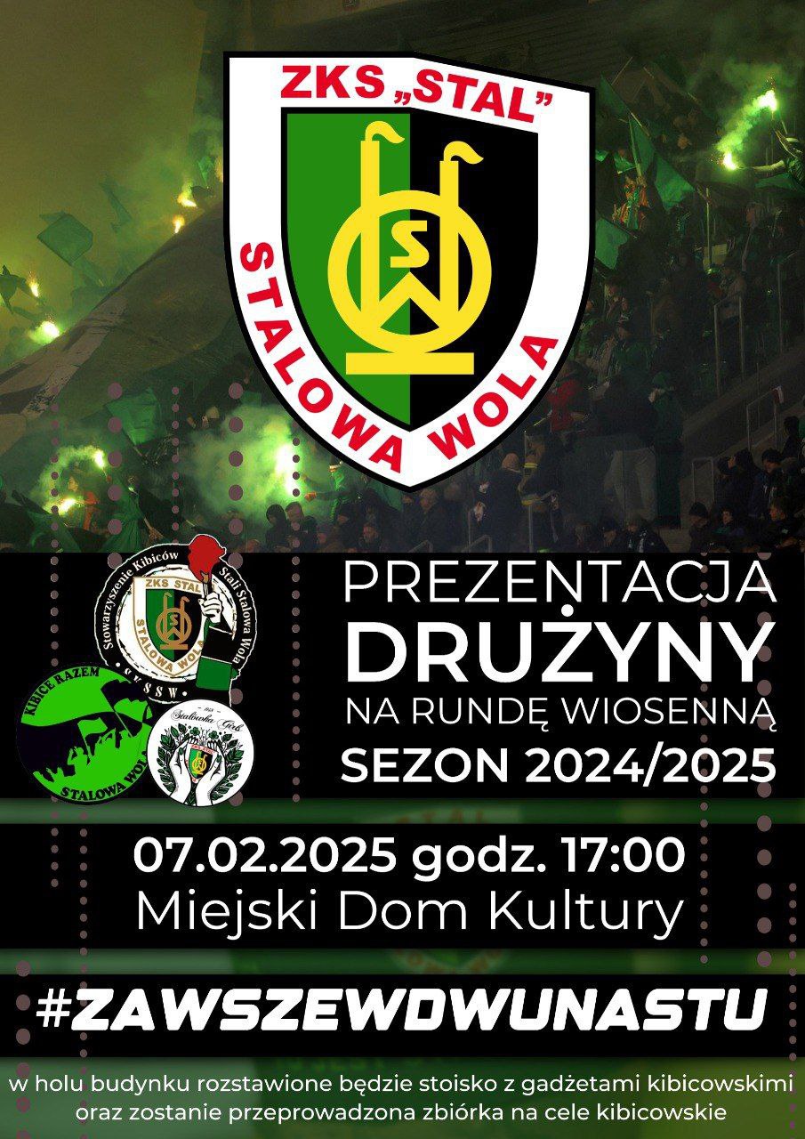 Serdecznie zapraszamy w najbliższy piątek 7 lutego do Miejskiego Domu Kultury w Stalowej Woli, gdzie odbędzie się PREZENTACJA DRUŻYNY STALI.