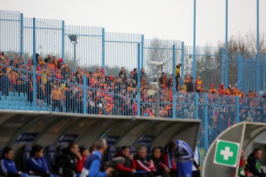 526 kibiców Jagiellonii na wyjazdowym meczu w Płocku. Dodatkowo 20 kibiców z KKN obok sektora gości.