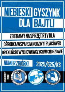 Podczas piątkowego meczu przeprowadziliśmy zbiórkę na Sprzęt RTV dla Ośrodka Wsparcia Rodziny i Placówek Opiekuńczo Wychowawczych w Chorzowie, warto dodać że wolontariuszami były dzieci i młodzieży z ośrodka oraz osoby z Klubu Kibica Niepełnosprawnych Ruchu Chorzów, którzy także licznie byli obecni na derbach z GKS Tychy.