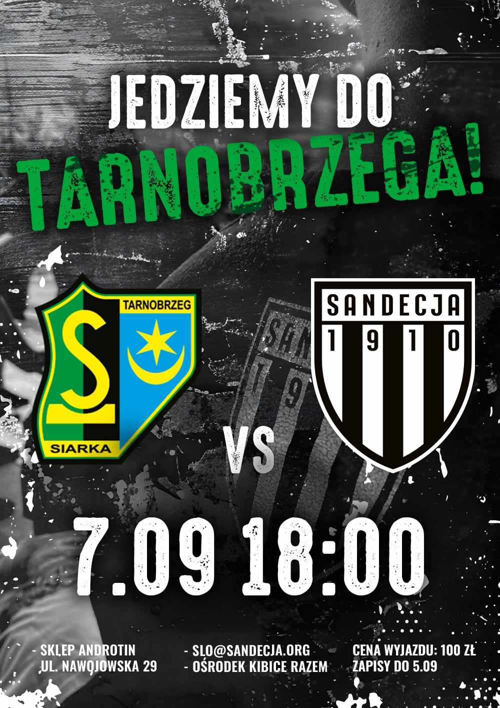 Organizowany jest wyjazd na mecz z drużyną Siarki Tarnobrzeg. Spotkanie zaplanowano na 7 września godzina 18:00. Osoby zainteresowane zapraszamy.Ośrodek Kibice Razem Sandecja Nowy Sącz jest współfinansowany przez Ministerstwo Sportu i Turystyki oraz Urząd Miasta Nowego Sącza. Koordynatorem centralnym Programu KIBICE RAZEM jest Polski Związek Piłki Nożnej.