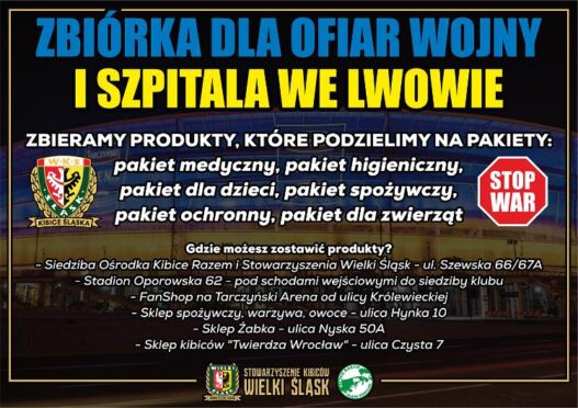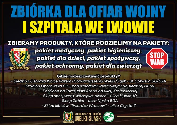 ŚLĄSK WROCŁAW ROZPOCZYNA ZBIÓRKĘ DLA OFIAR WOJNY I SZPITALA WE LWOWIE!