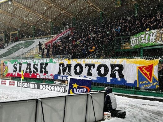 Około 400 kibiców Śląska i Motoru wspierało Śląsk Wrocław w Łęcznej.