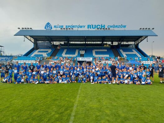 Na głównej płycie boiska przy ul. Cichej na małych piłkarzy czekała nie lada gratka – mogli spędzić godzinę bawiąc się i grając w piłkę z zawodnikami pierwszej drużyny, a wszystko to w akompaniamencie komentarza najlepszego ze spikerów, Kuby Kurzeli.