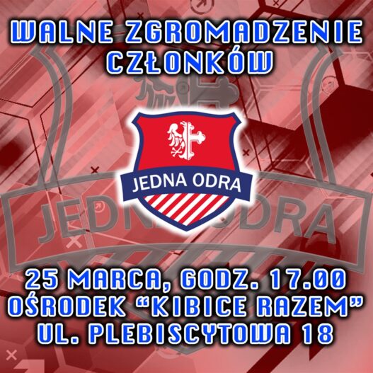 Operator Opolskiego ośrodka „Kibice Razem” – Stowarzyszenie Sympatyków Odry Opole „Jedna Odra” – zaprasza wszystkich członków oraz sympatyków na Walne Zgromadzenie Członków, które odbędzie się 25.03 o godzinie 17:00 w ośrodku KR na ul. Plebiscytowej 18.