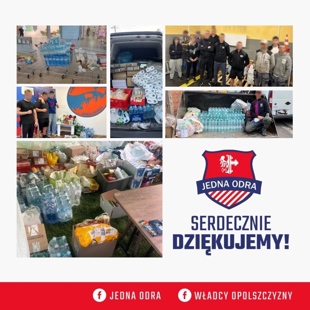 Są rzeczy o których nikt nie chce pisać i z których nie można się cieszyć. Ale w ostatnim dniu miesiąca warto wspomnieć kilka słów i działaniach kibiców Odry Opole podjętych w obliczu klęski żywiołowej – powodzi jaka dotknęła m.in. Opolszczyznę.Zareagowaliśmy szybko, jeszcze nim wiele miast dotknęła fala powodziowa już prowadziliśmy zbiórkę potrzebnych rzeczy. Ośrodek
