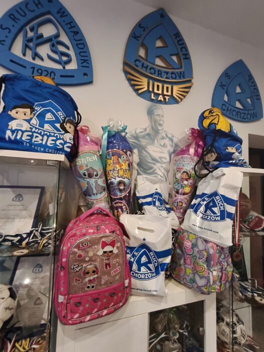 W całej zawartości takiej wyprawki nie mogło zabraknąć oczywiście o akcencie niebieskich gadżetów Ruch Chorzów ⚪️ w postaci poduszki, bidonu i wielu innych…
