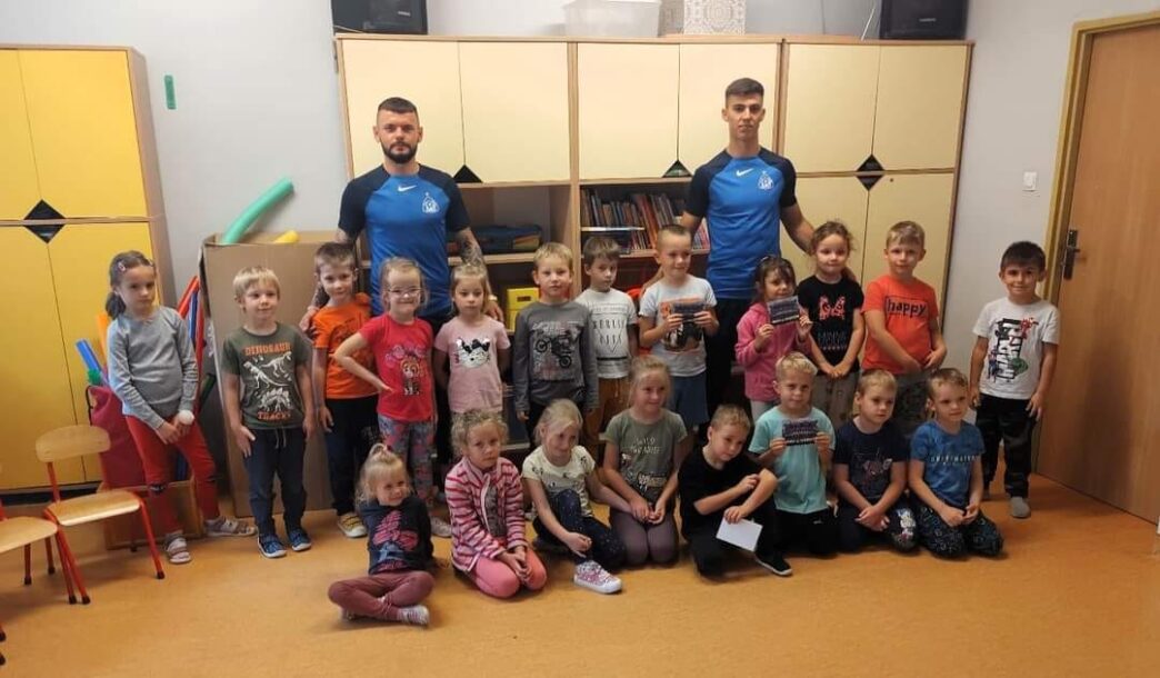 Piłkarze Ruchu, Dawid Barnowski i Miłosz Kozak, odwiedzili chorzowskie Przedszkole nr 8 przy ul. Kochanowskiego